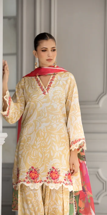 Dhanak 3-Piece Suit with Heavy Embroidered Dhanak Shawl – Brand Code 1026